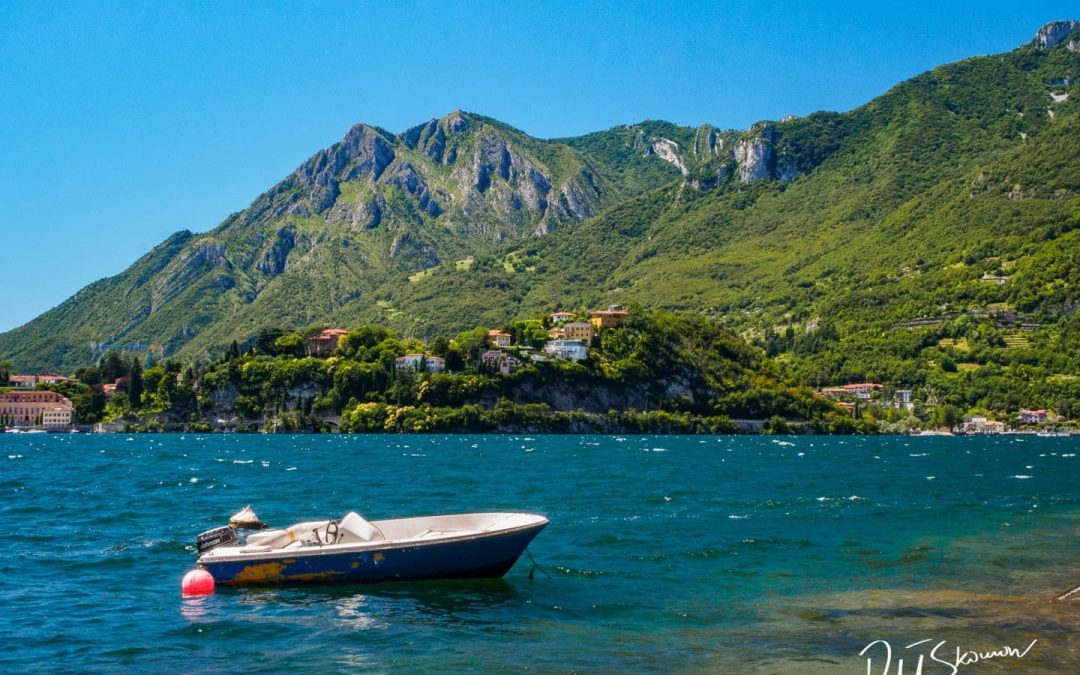 Panorama na jezioro Como, góry i część miejscowości Lecco
